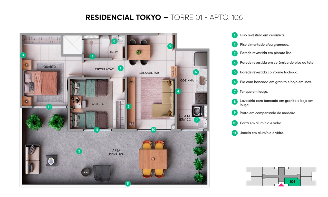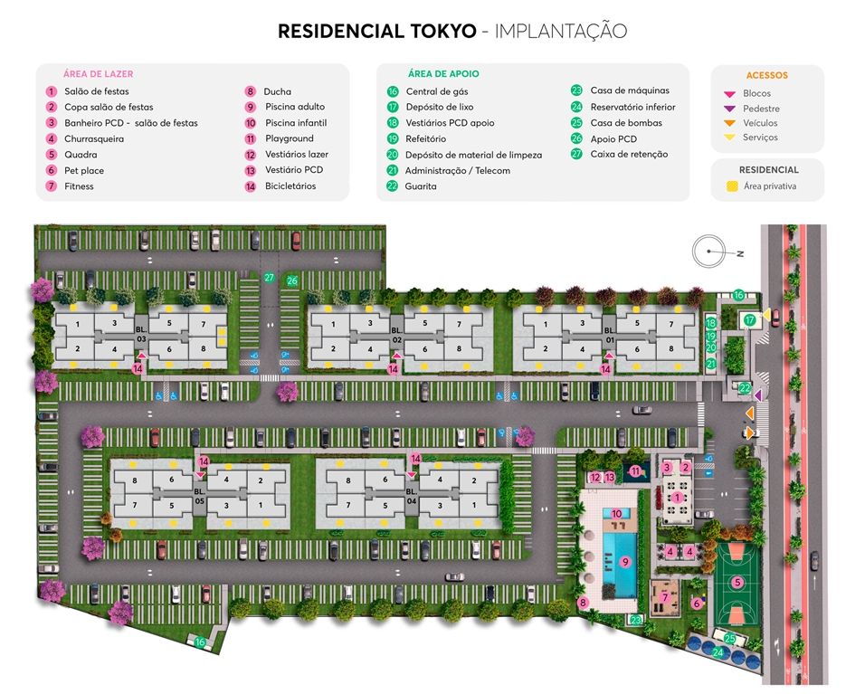 Escolha trazer mais leveza, conforto e comodidade para os seus dias. No Residencial Tokyo, você garante uma vida com mais qualidade e facilidades - começando pela localização que é estratégica e a ideal para você! O lazer vai surpreender: são piscinas, playground, salão de festas, pet place, churrasqueira e quadra poliesportiva para você e sua família se divertirem muito! Além de espaço fitness para seus dias ganharem mais movimento. São apartamentos de dois quartos com suíte, superconfortáveis e com toda a segurança de um condomínio fechado. A praticidade no seu dia a dia com elevadores e vaga de garagem para você guardar seu carro ou moto.